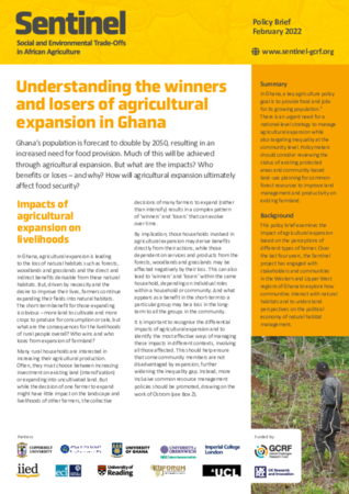 This policy brief examines the impact of agricultural expansion based on the perceptions of different types of farmer based in the Western and Upper West regions of Ghana.